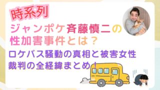スキャンダル 【時系列】ジャンポケ斉藤慎二の性加害事件とは?ロケバス騒動の真相と被害女性・裁判の全経緯まとめ! 2024年に発覚し、2026年現在も裁判が続く斉藤慎二の性加害事件。「ロケバスで何があったのか?」「被害女性は誰なのか?... 2026.03.25 スキャンダル芸能ニュース