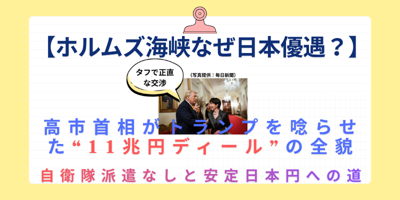 【ホルムズ海峡なぜ日本優遇?】高市首相がトランプを唸らせた“11兆円ディール”の全貌|自衛隊派遣なしと安定日本円への道